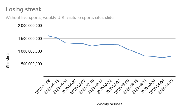 Over the previous six weeks, digital advert spending has fallen by nearly 50%, in line with the fundingfinancial institution UBS, placingmonumentalstrain on each nook of the media world. Howeverwhereassureclasses of media have loved spikes in visitorslately, sports activities publishers have struggled over the previous six weeks, throughout a time of yr when their audiences usually surge, because ofoccasions together with the NCAA males’s basketball match, the NFL Draft and the NBA playoffs. Within the first week of March, sports activities publishers’ websites attracted greater than 1.2 billion visits, in line with Comscore knowledge; within the first week of April, whole visits to thesewebsites had slid 34%, to greater than 790 million visits, the infoconfirmed. By way ofthe primary three weeks of April, no single week has improved on that whole. Collectively, sports activitieswebsites’ whole views in March 2020 had been down greater than 25% yr over yr, Comscore knowledgeconfirmed. Butthe shortage of residevideo games has damage linear TV too. Broadcasters have tried the whole lot from rebroadcasting previousvideo games to live-streams of esports, applications that some advertisers responded to coolly.
